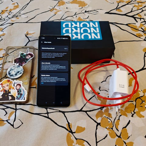 Ostettu 7.3.2024, takuuta 7.3.2027 asti, takuukuitti mukaan. Kaupanpäälle kolme suojalasia, alkuperäiset kuoret ja tarvikemallin 80w supervooc-laturi.