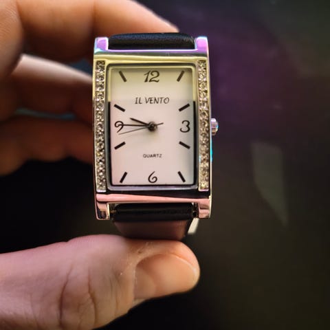 Hyvä käytetty kunto. Kuoressa ja takakannessa käytön jälkiä ja pintanaarmuja. Nahkarannekkeessa vähän näkyvää kulumaa.