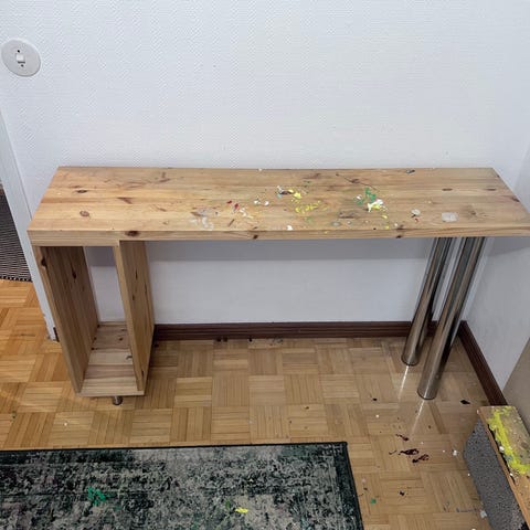 Annetaan maalaushuoneen pöytä. Tukeva ja hyvä pöytä. Nouto Sörnäisistä.