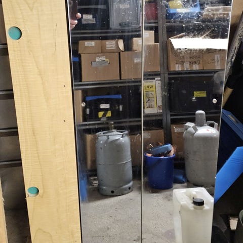 Iso peililiukuovi korkeus 2340mm pyörien kanssa, leveys 1010mm, ei sopinut omiin suunnitelmiin.