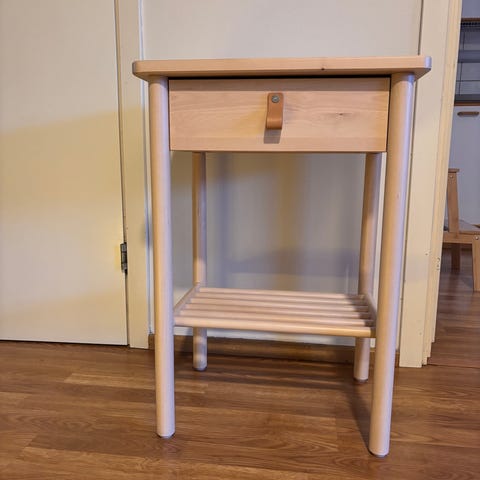 Ikean musta metallinen Fyresdal sivupöytä. Takana renkaat. Ei käytön jälkiä. Kissatalous.