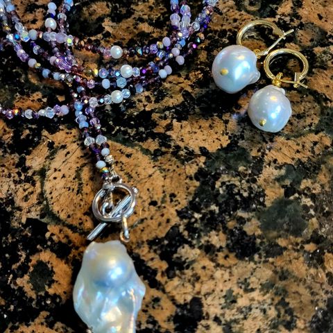 Vintage,art deco tyylinen kaulariipus ja korvakorut