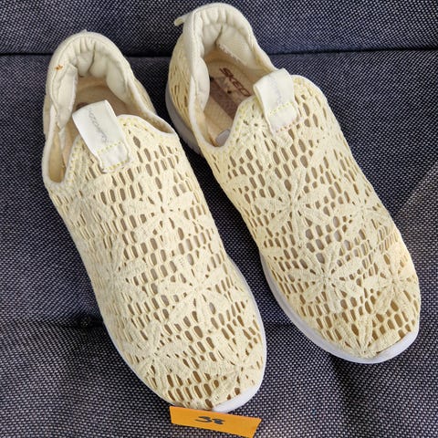 Muutaman kerran käytetyt tennarit. Näissä ihana heijastava pinta ja satiininauhat.