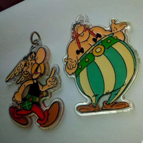 Myydään kaksi sympaattista hahmoa tunnetusta Asterix-sarjakuvasta:
