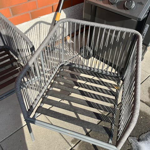 Neljän hengen ulkoruokailuryhmä. Pöytä ja neljä tuolia. Jotain pieniä haarmuja/ jälkiä voi olla, mutta yleisilmeeltään siistissä ja ehjässä kunnossa. Muuton alta pois. Sijaitsee tällä hetkellä lohjalla. Voidaan kuljettaa espooseen tai kuljetus lohja-espoo välillä kuljetusmaksua vastaan. :)