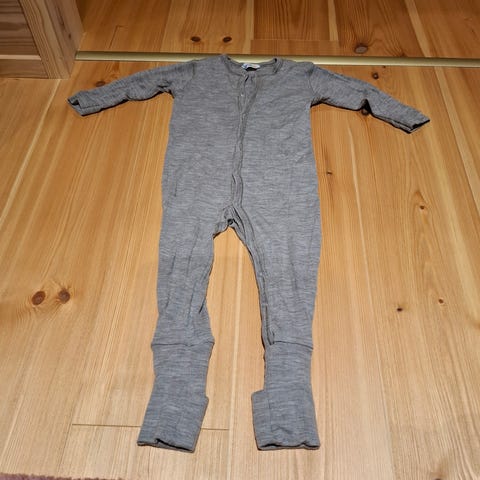 Hyvä kuntoinen 50% merinovilla yöpuku. En huomannut kuin vähän nukkaa mikä tyypillistä mutta saa pois. Koko 80.