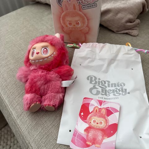 Labubu The Monsters Wacky Mart keräilyhahmo MILK, joka menee maitopurkin muotoiseen rasiaan. Mukana on myös keräilykortti ja alkuperäinen pakkaus, josta aitouden voi tarkistaa.