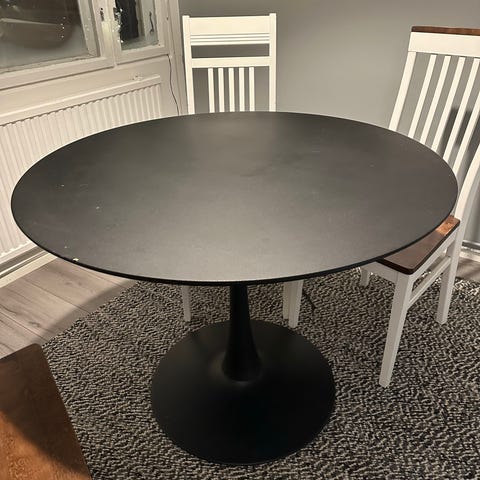 Myydään todella siisti valkea pyöreä ruokapöytä.