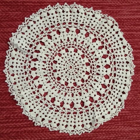 Myydään kaunis ja huolellisesti viimeistelty 19 kappaleen setti käsin virkattuja pitsiliinoja. Liinat ovat erinomaisessa kunnossa, puhtaita ja ne on juuri silitetty tasaisiksi.