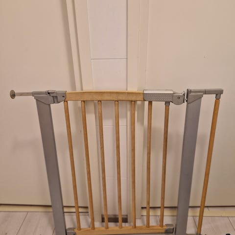 Vähän käytetty teräksinen turvaportti. Sopii 75-81 cm oviaukkoon (tai portaisiin). Kiinnitys pingottamalla. Avattavissa yhdellä kädellä. Pidennettävissä jatkopalloilla (Verkkokaupasta)