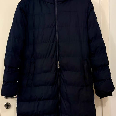 Koko 34/36 ja olen itse kokoa M (170cm / 75kg) ja takki menee hyvin kiinni ja istuu