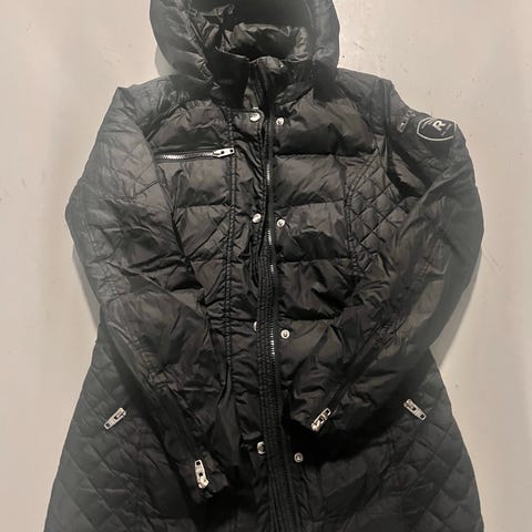 Yksi neppari on irronnut, mutta se ei näy läpän alta ja vetoketjulla takki sulkeutuu normaalisti.