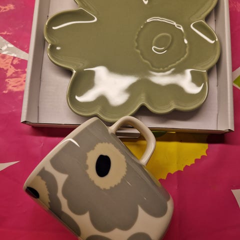Myydään kuvassa olevat Marimekon Shape lautanen ja tuikku