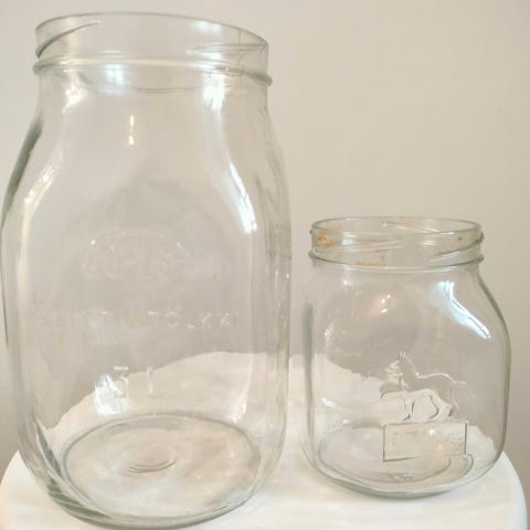 Riihimäen lasi Karhu 3 litraa ja Ilves 1 litraa keittiötölkki