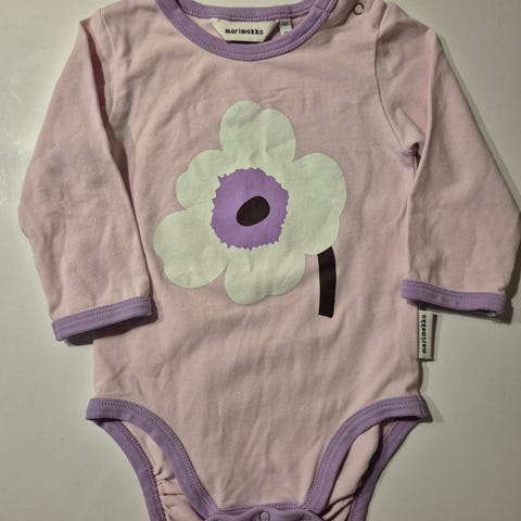 Myydään uutena ostettu, yhdellä muutaman kerran käytetty Unikko Vinde -body koossa 62. Meillä oli tämä kahdessa peräkkäisessä koossa, joten ei monesti päällä käynyt. Erinomainen kunto, ei paljoa uudelle häviä, syynäämällä jotain aivan hentoa pesuhaitua erottui joistain kohdista.