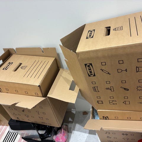Yhdessä muutossa käytettyjä pahvilaatikoita muuttoa varten.