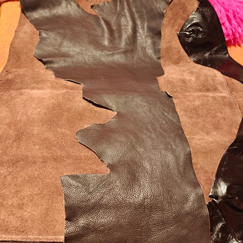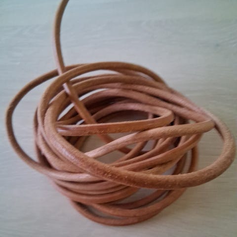 Nahkainen pieni rasia, jossa on pyöreä muoto ja rusehtavaa väri. Taiteilijan työ.