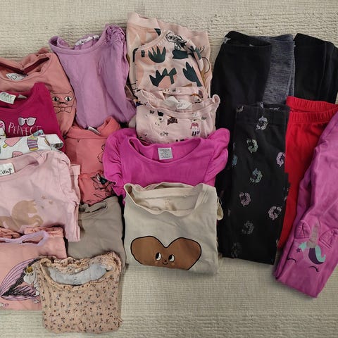 Lastenvaatepaketti. Osassa pientä käytön jälkeä,mut suurin osa hyvässä kunnossa. Koot 92(pari) 98-104. Merkkinä Nosh, H&M, Lindex. 24 kpl. Kaikki ei kuvissa.