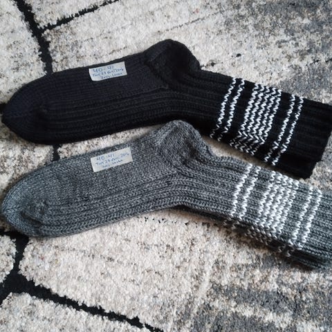 Kotikulta sukkalangasta käsinkudottu villasukat, 75 %villa ja 25 polyamidia, konepestävä, vahvistettu kantapää. Koko 44-45. Postitus onnistuu. MMM.