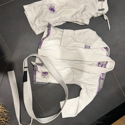 Gracie Barra jujutsu setti lapselle. Tosi hyväkuntoinen, aluspaita uutta vastaava. Ollut käytössä 10vuotiaalla hoikalla lapsella. Menee hyvin nuoremmallekin.