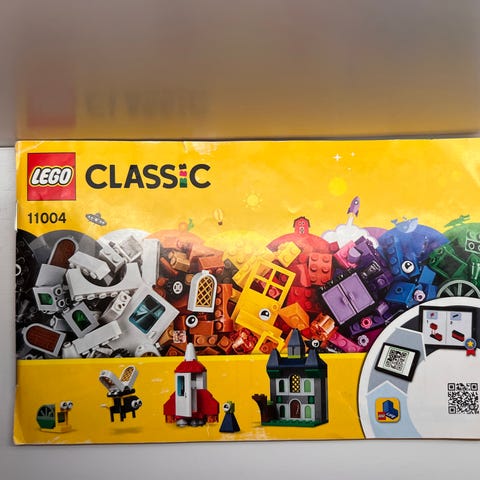 LEGO rakennuspalikat eri kokoisina ja väreinä. Paketti sisältää useita osia ja ohjekirjoja eri rakennussarjoihin.