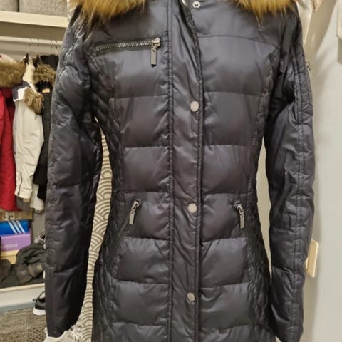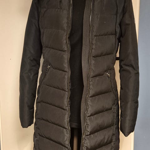 Superlämmin Rockandbluen musta untuvatakki. Vähällä käytöllä ollut. Kauluksessa ihan vähän ilmeisesti meikistä jälkeä. Koko 36.