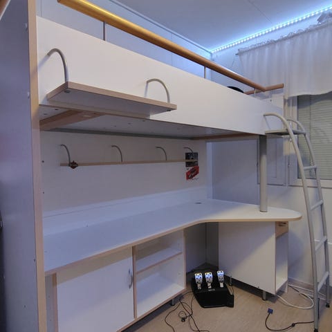 SMÅSTAD Parvisänky, valkoinen liitutaulupinta/ja työpöytä ja 4 laatikkoa (IKEA)