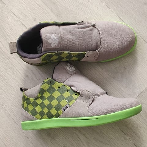 Kengät ovat olleet vain vähäisessä käytössä, kuten kuvista näkyy, minkä ansiosta kangas on yhä puhtaan valkoinen ja pohjat lähes kulumattomat. Myyn kengät, koska oma pukeutumistyylini on muuttunut.