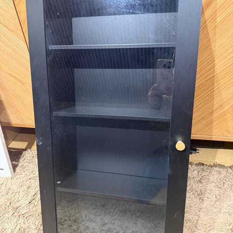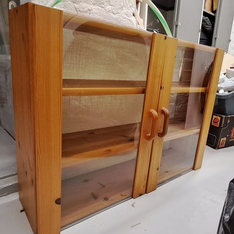 Seinälle kiinnitettävä säilytyskaappi - osa ovista lasia