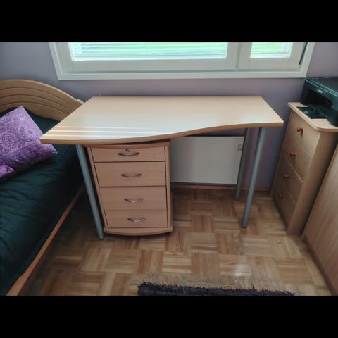 Pöytä syvyys 64 cm, pituus 134 cm, korkeus 76cm.