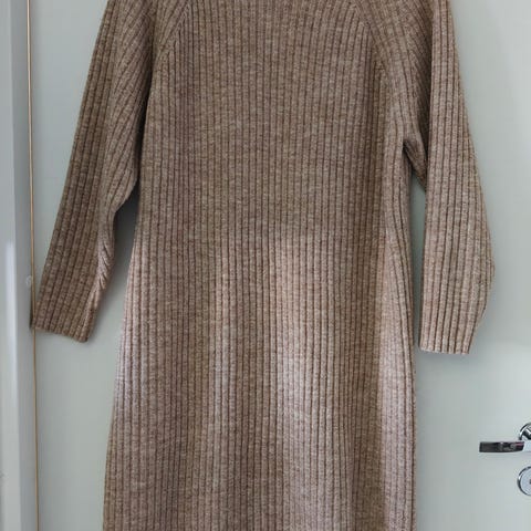 Pitkä neule/neulemekko. Ostettu kirpparilta käyttämättömänä, mutta jäi itsellä kaappiin. Ei lappuja kiinni, mutta koko noin L. Kai-kai 60, olka-helma 90 cm.