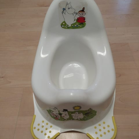 Myydään Muumi potta. Kahdella lapsella käytössä ollut, mutta siistissä kunnossa. Selkänojan kuva vähän kulunut.