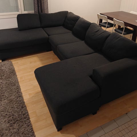 Ihana löhöilysohva jossa on myös hyvä nukkua. Istun korkeus 45 cm. Istuin ja sohva päälliset vetoketjulliset ja istuin tyynyt myös käännettävissä. Ehyt ja ei eläimiä taloudessa. Myytävänä muuton tieltä. Vain nouto