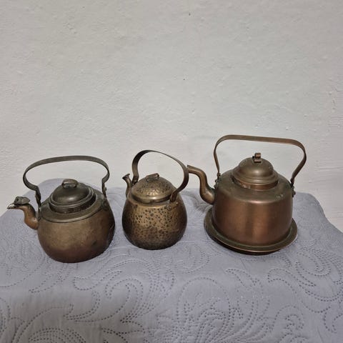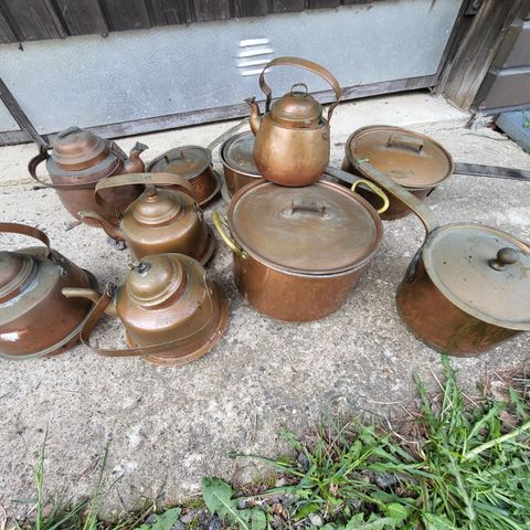 Kuparipannuja, kasari, messinkiruukku ja kaadin. Kaikki kerralla.