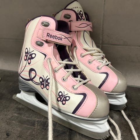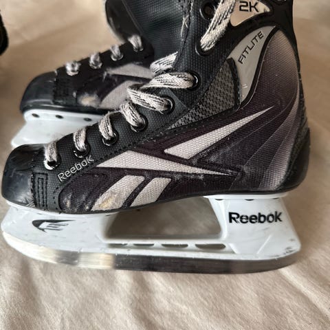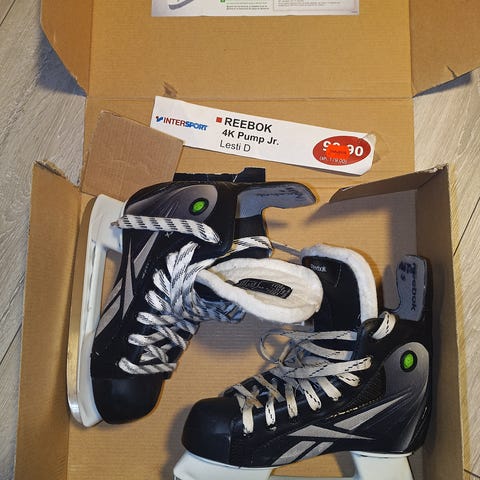 Reebok 1K hokkarit koossa 34, pohjallisen mitta 21,7 cm, kapeahko D-lesti. Vähän käytetyt, hyväkuntoiset. Tuntui olevan ihan ok terässä, vähän tummentumaa terissä. Vahanauhoilla.