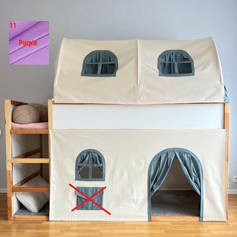 Kura sänkyyn tarkoitetut torikoju kankaat, kolme eri kangasta ja tarralliset kiinnityskoukut, joista yksi uupuu, saa ripustettua ilman yhtä keskikoukkuakin. Hetken kerkesi olla vain käytössä, terve sisäilma ja lemmikitön talous.