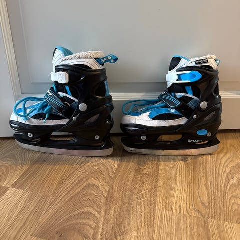 Hyväkuntoinen säädettävät lasten jääkiekkoluistimet.