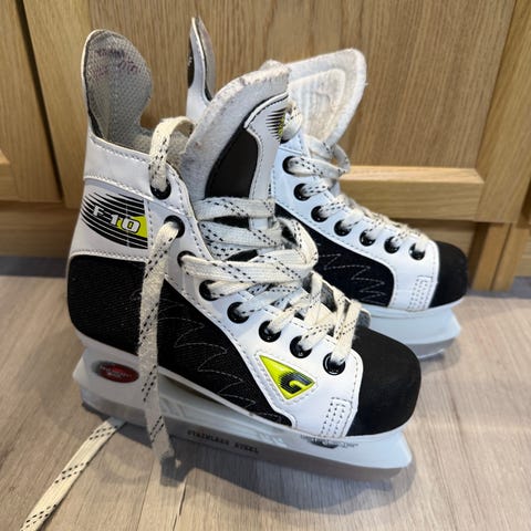 Hyvin pelittävät luistimet. CNX 9000, Shark. Hyvässä terässä, pääsee heti kentälle. Toisesta pohjallisesta on pala poissa, en muista mitä käynyt ja toisen luistimen sisäkyljessä ilmeisesti luistimen terä tehnyt jäljen säilytyksessä, ei haittaa menoa. Hinnassa huomioitu. 2 lasta näillä luistellut.
