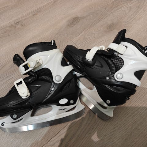 Hyväkuntoiset luistimet. Kokomerkintä GS3. Pohjallisen pituus 22,0 cm eli vastannee noin koko 34 tai 35. Lämmin vuori.