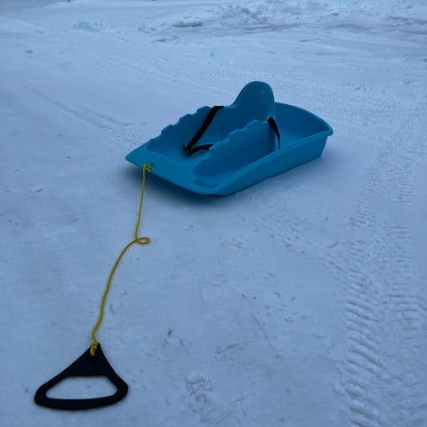 Sekä kaksi lasten lumikola , sininen ja punainen.