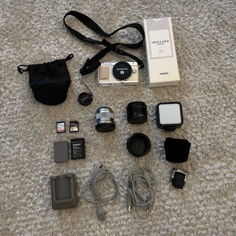 Valkoinen Olympus PEN E-PL8 mikrojärjestelmäkamera setti