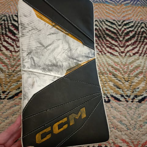 CCM kilpi oikeaan käteen ja räpylä vasempaan. Ostettu uutena ja ollut käytössä pari vuotta.