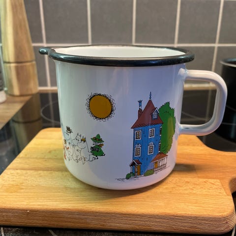 Myydään kaksi emalista Muurlan muumimukia (Talvi (2011-2013)). Siisti kunto, oikeastaan ei ole ollut käytössä mutta sinisen mukin pohjassa on lieviä kulumajälkiä. Myös korvan sisällä ”ruostetta”, kts. kuva. Myydään settinä