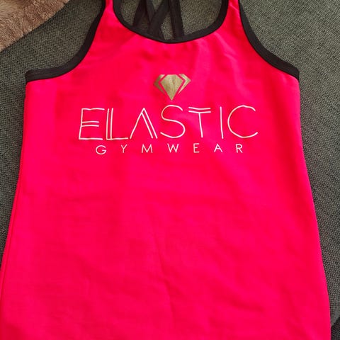 Elasticin 140cm sininen toppi. Kolmessa kohdassa on tehty kuvan mukaista uutta ommelta mustaan kanttinauhaan/resoriin. Printti ei enää uudenveroinen. 18e.