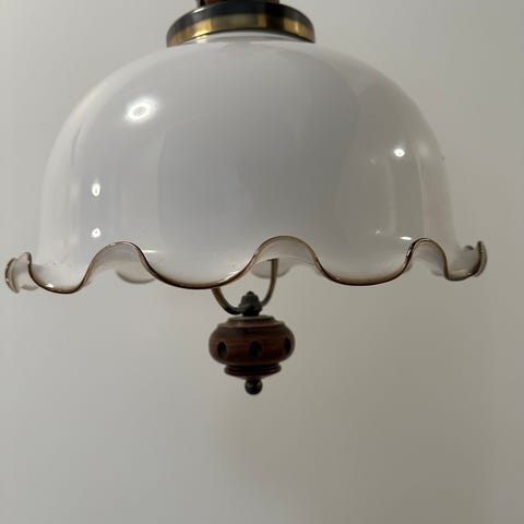Vanha valaisin opaalilasia, tammi / messinkisomisteet