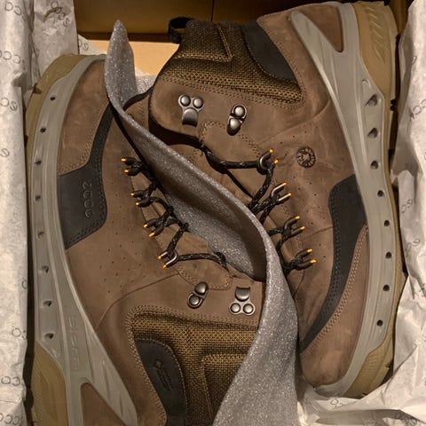 Ecco talvikengät koko 43, ruskeaa väriä. Kengät on suunniteltu talvikäyttöön ja niissä on lämmin vuori. Materiaali ja rakenne sopivat kylmiin olosuhteisiin.