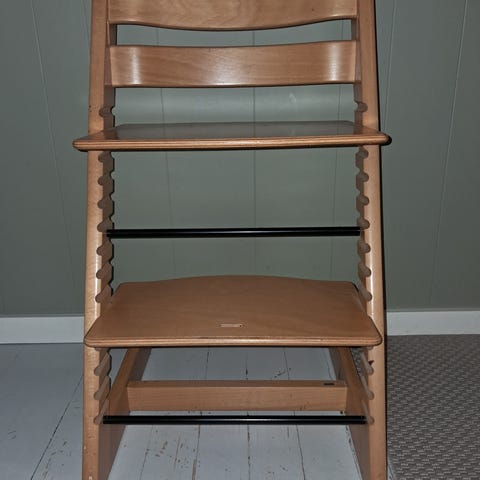 Stokke Tripp Trapp syöttötuoli lisävöillä. Väri alkuperäinen valkoinen. Nouto lehmosta.