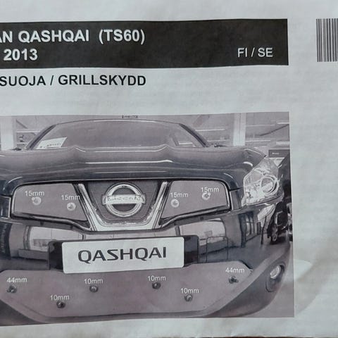 Nissan Qashqain maskisuoja malleihin J10 ja NJ10 (qashqai+2), vuosimallit 2006-2013. Ostettu Nissanin liikkeestä.