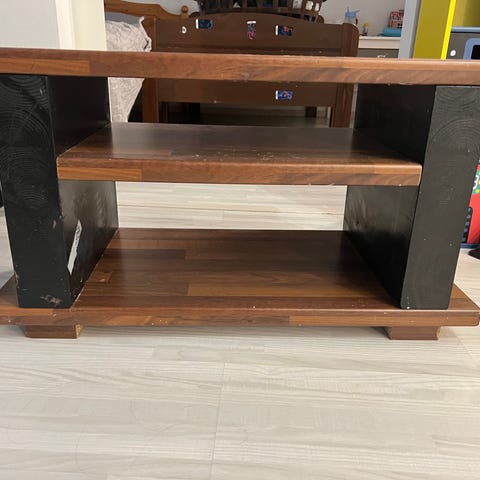 Elämää nähnyt mutta tv-tasona toimiva valkoinen lipasto nikkaroitavaksi.