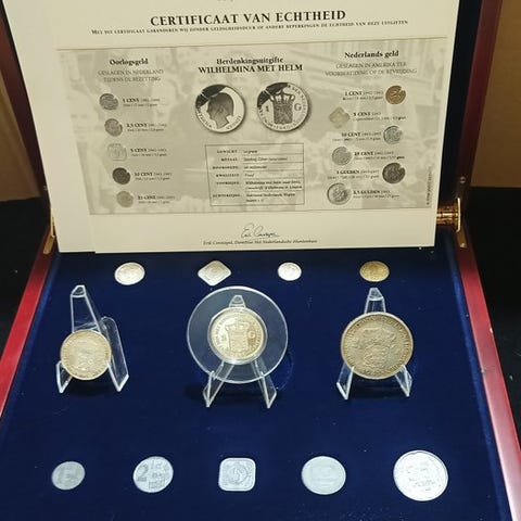 ***Hollanti. Deluxe-kotelo "1950-1946 Oorlogsgeld" 12 kolikkoa (5 hopeaa 720/925)***
